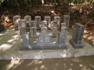 古墓の前には供物式香炉と線香立てを設置し、ご先祖様達のご供養ができるようにしました。